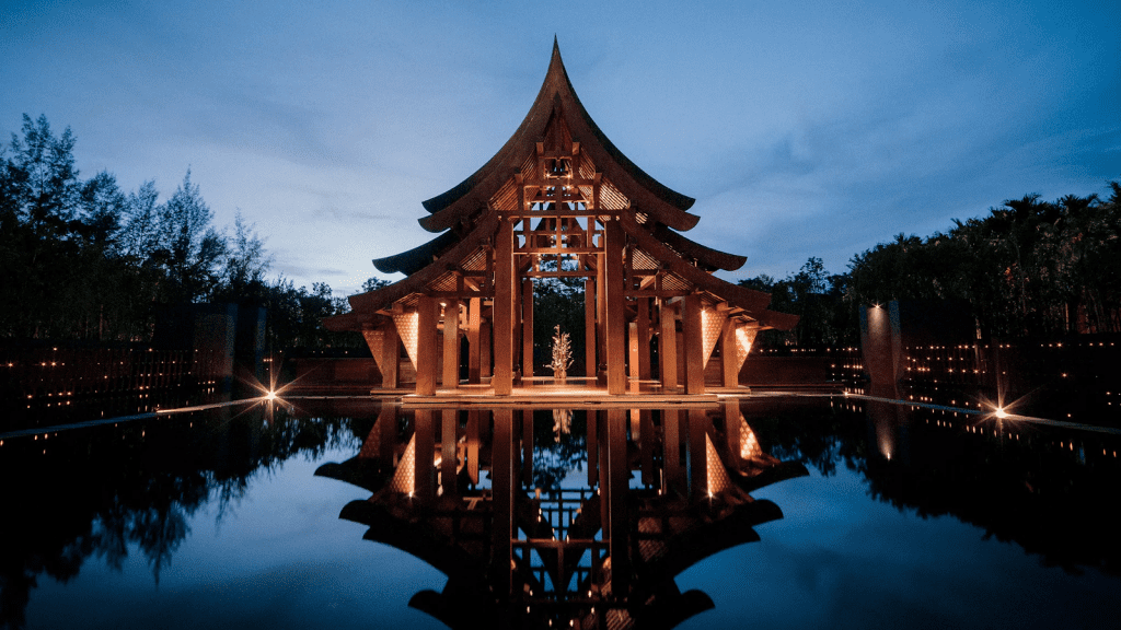 - Designed like a traditional Thai village, its pavilions and villas blend seamlessly into the lush landscape.